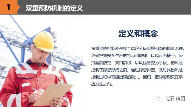 在培訓活動中,朝陽集團申總詳細給員工講解了風險分級管控、隱患排查治理的概念、方法和流程等,并強調了雙重預防機制在安全生產中的重要性。申總首先對雙重預防機制的定義進行了闡述,再對風險分級管控與隱患排查治理的雙重預防機制進行了深入的講解。