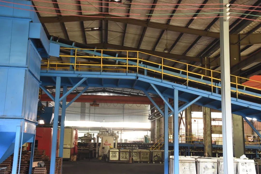 2022年,粘土砂鑄造投放使用了一條自動化生產(chǎn)線,有效的提高了工作效率。其粘土砂鑄造和消失模鑄造主要是生產(chǎn)中小件、中高檔鑄件。用于朝陽集團企業(yè)下的水泵和電機的配件,以及重機制砂配件。10噸爐V法鑄造和消失模鑄造主要生產(chǎn)平衡重塊,為合作伙伴提供優(yōu)質(zhì)配重塊。