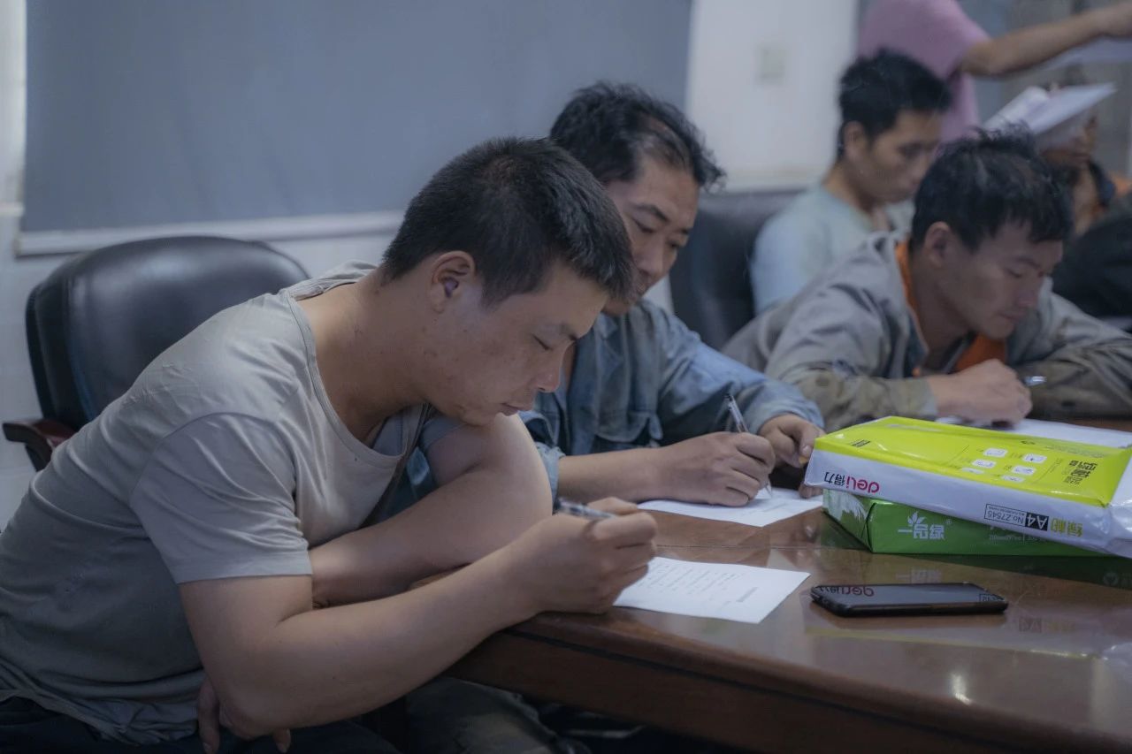 在對行車、有限作業(yè)空間安全操作標(biāo)準(zhǔn)進行細致學(xué)習(xí)后,全體參會人員一同觀看安全教育視頻,了解車間作業(yè)中發(fā)生的真實事故,以及事故帶來的人員財產(chǎn)傷害。安全生產(chǎn)教育培訓(xùn)的環(huán)節(jié),車間工人進行行車安全知識培訓(xùn)考試。安環(huán)委主任表示,他希望通過現(xiàn)場筆試這一方式,檢驗大家此次培訓(xùn)掌握情況,同時進一步加深鞏固安全知識。