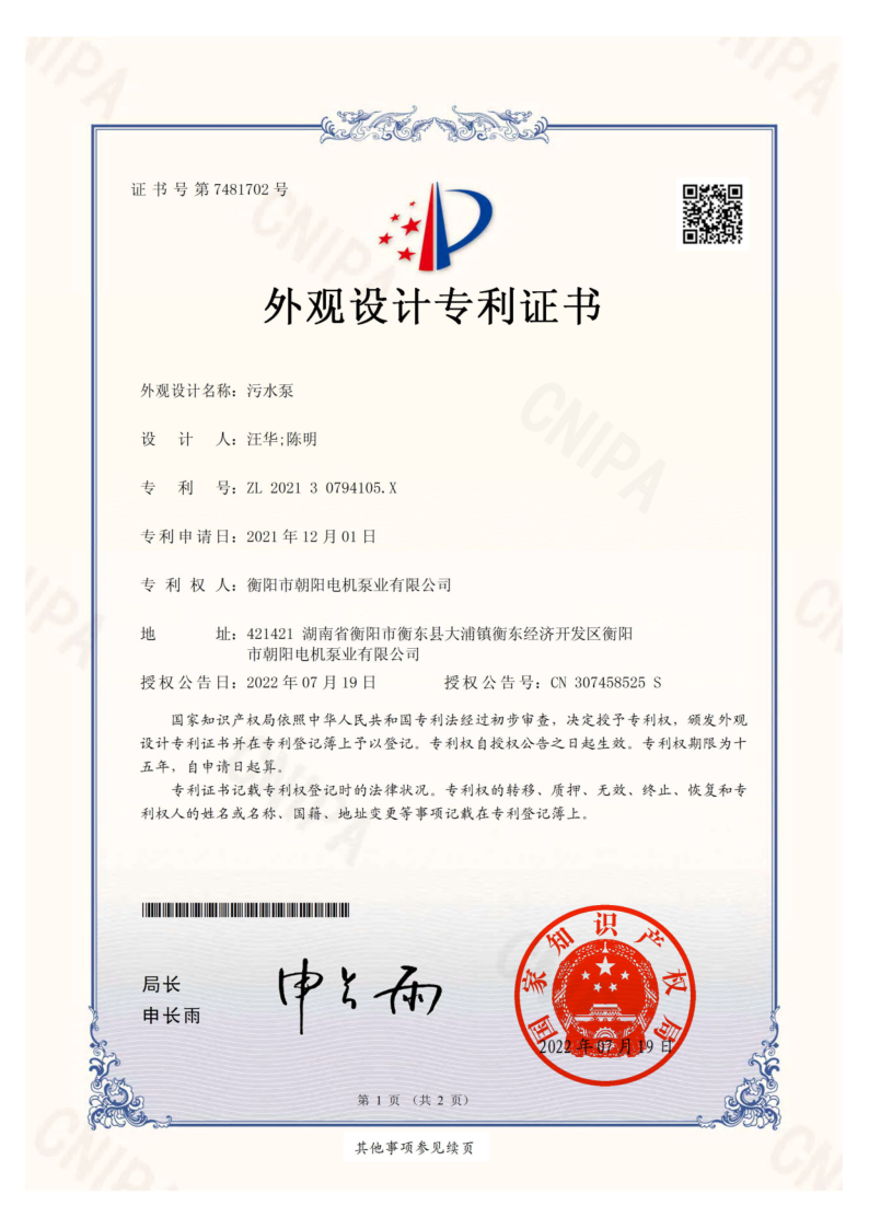 新一代WQ型污水污物潛水電泵-普通款采用了全新的外觀(guān)設(shè)計(jì),申請(qǐng)獲得了污水泵外觀(guān)設(shè)計(jì)專(zhuān)利證書(shū)。與老款WQ型污水泵相比,新款線(xiàn)條流暢,造型美觀(guān)。改進(jìn)的一體化底座自帶爛污網(wǎng)格,泵電一體,整體結(jié)構(gòu)緊湊,集成度高,使用面積減小,重量同比減輕8%以上。同時(shí),新款采用的下泵式結(jié)構(gòu),耐腐蝕、耐磨性能好,安裝和使用維護(hù)也方便。