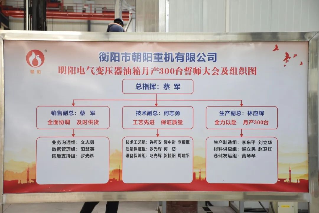 今天的宣誓在我們每個人的心中種下一個火種,將我們?nèi)w朝陽人團結(jié)一心、齊心協(xié)力、精益求精,不斷創(chuàng)新,不斷突破,服務好客戶,提升好自身。以做好明陽電器月供300臺變壓器油箱為起點,攻艱克難,持續(xù)追求卓越,不斷超越自我,做出一個客戶滿意、員工幸福、茁壯成長般“驕陽似火”的朝陽集團。